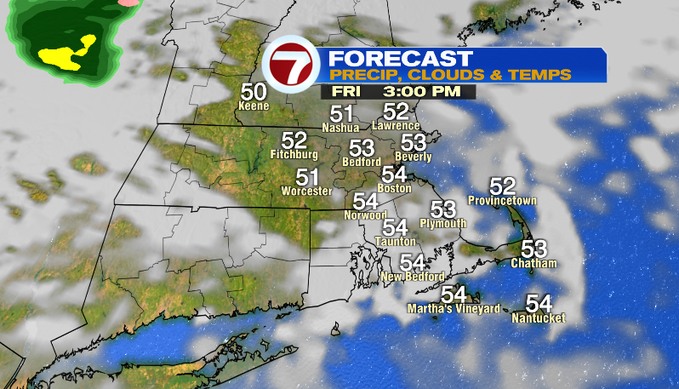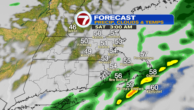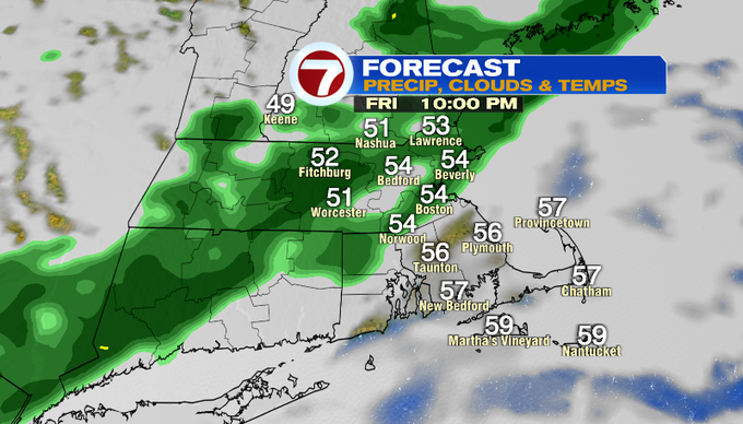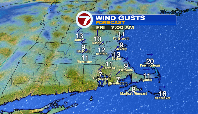 Saturday is our mildest day with highs in the low 60s. That’s slightly above our normal high of 55° in Boston. There won’t be a lot of wind this weekend, so we can take a break from that. Highs will be closer to average in the mid/upper 50s Sunday.