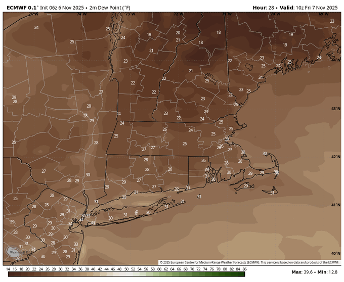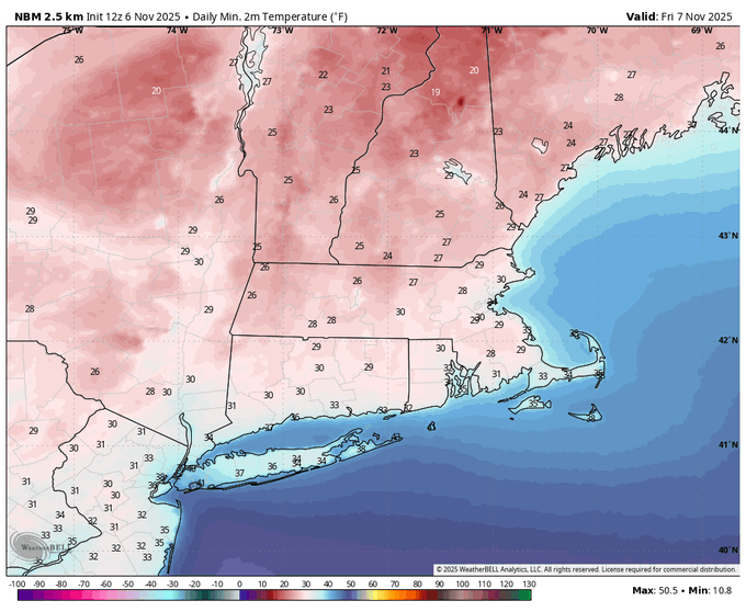 The wind relaxes as low pressure continues to move farther away from us. A secondary cold front was draped across southern New England this morning. Behind this drier air will continue to work in allowing temperatures to really drop overnight. It will be a cold start tomorrow morning with temperatures dropping into the upper 20s.