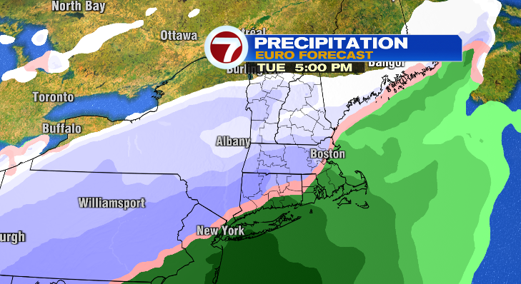 Lows Tuesday will be in the 20s and highs differ greatly: low 40s across the southeast and low to mid 30s farther north and west of Boston. Wednesday and Thursday: dry and in the 20s to the upper 30s. Friday: cloudy and a cold start in the teens! Highs will reach the low 30s.